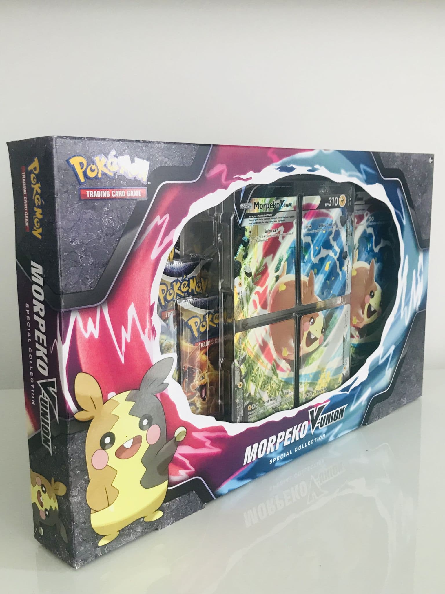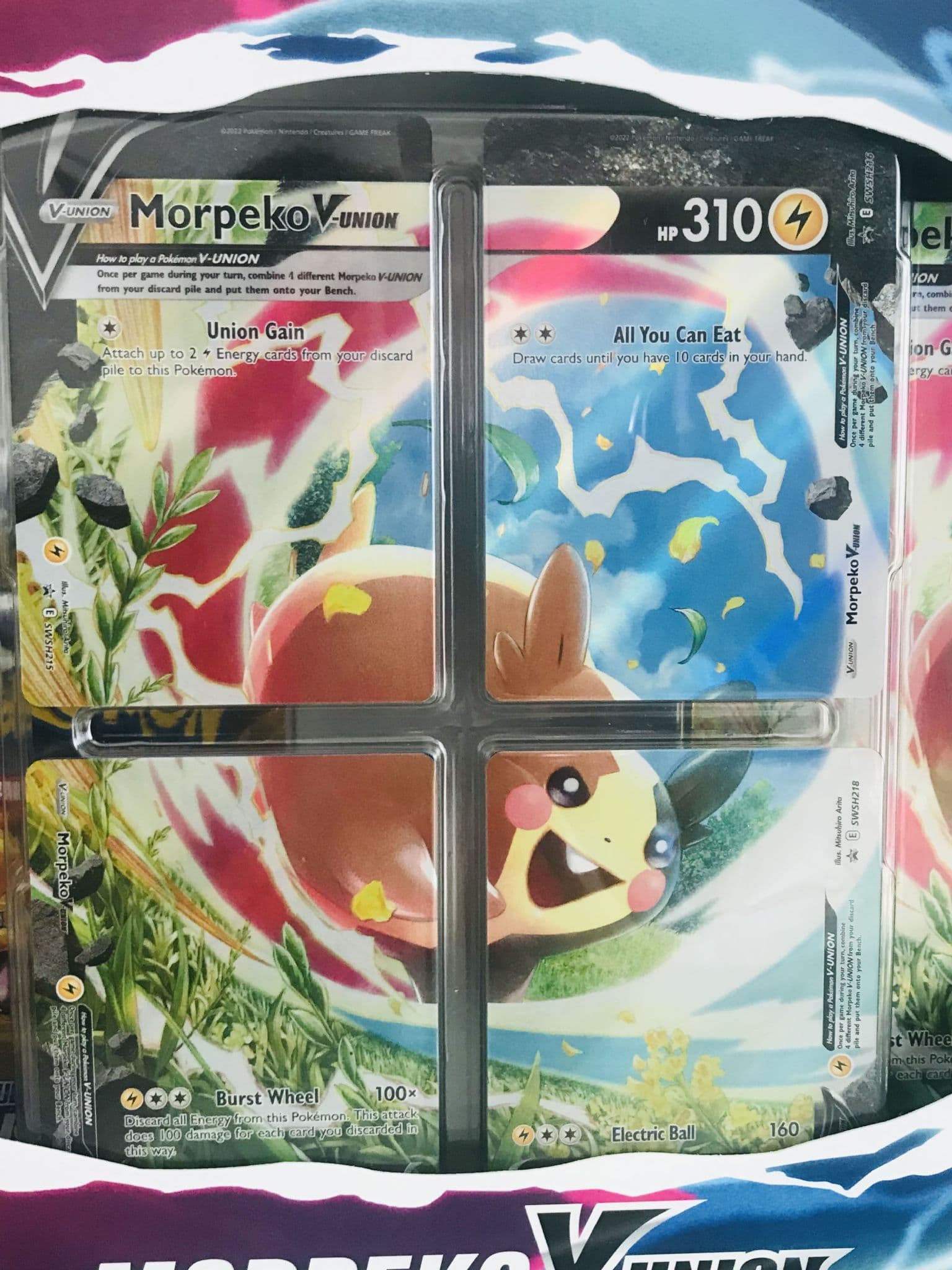 Feisty little Morpeko makes a big impression as a Pokémon V-UNION! With help from Professor Burnet, you can assemble Morpeko V-UNION and its smorgasbord of attacks that let you gobble up Energy and other useful cards,